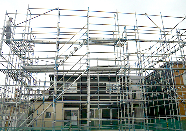 フタバ建工は、「外部足場」「内部足場」「先行足場」など足場工事専門の会社です。